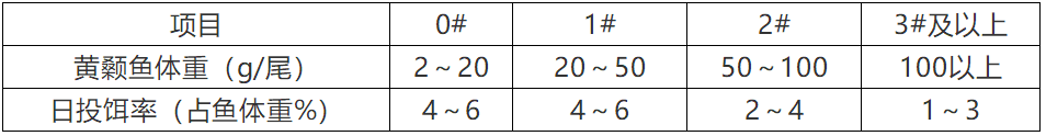« 根据黄颡鱼规格及数量,参考投饵参考表中推算投饵量,再根据天气、水温、水质、饵料台观察情况、黄颡鱼摄食及健康状况等予以适当调整。